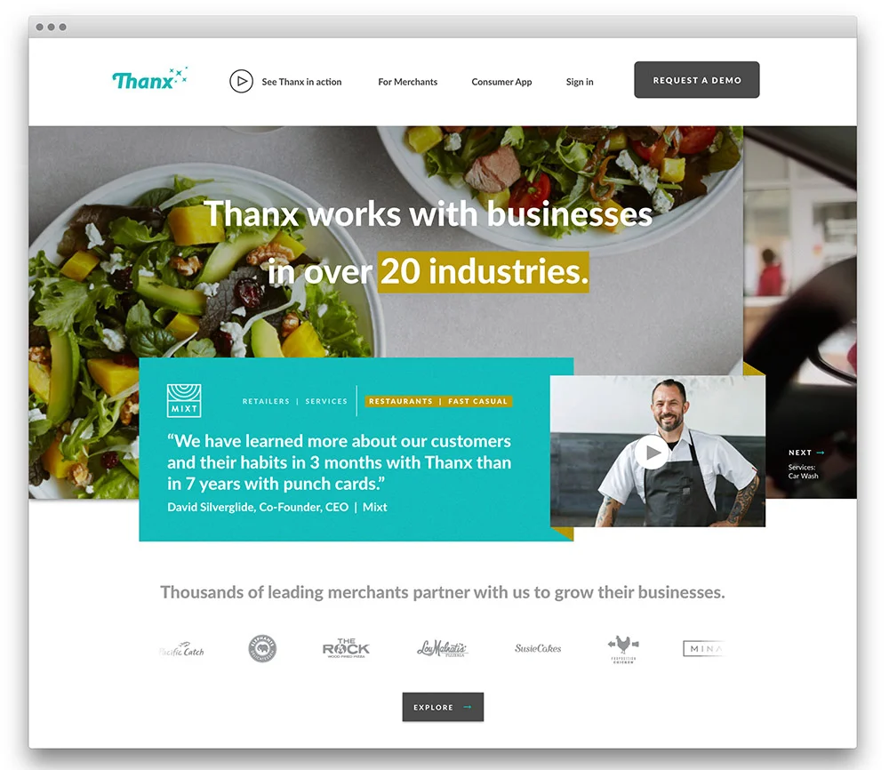 Consulting for Thanx, we improved customer experience and curbed user confusion and bounce with a “one concept at a time” approach. We enhanced overall visual and written branded communications and designed website and product improvements that helped users successfully navigate the Thanx product suite.
